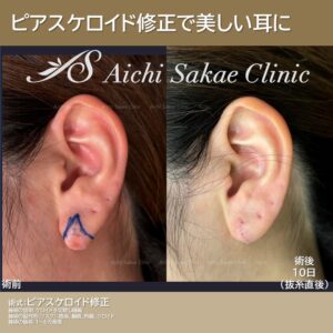 • 大きさ・部位により形成外科的にケロイドを切除し、ピアス穴も温存可能