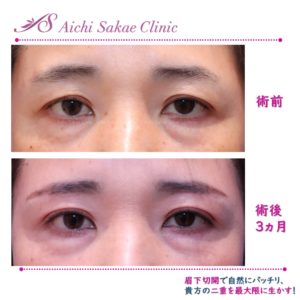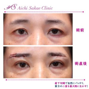 上まぶたを眉毛の下縁に沿って切り取って吊り上げる手術、別名「眉下リフト」