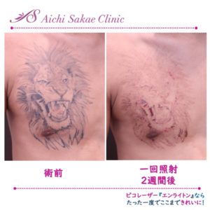 レーザーはいわゆる「火傷」なので、刺青より浅い表面の皮膚自体も
