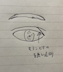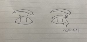 蒙古ヒダに引っ張られ取れやすいため内側に一点必要になります。