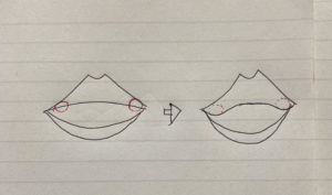 実はこの注入法、口角を上げているのではなく、口角の手前を「下げ」て、
