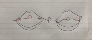 横からみたときの口唇のハネ感、いわゆる【Cカール】をつくったりします。