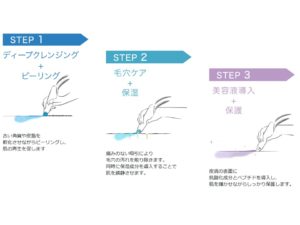 《汚れを特殊な薬剤でふやかして、水流で洗浄し綺麗になったところで美容液を入れる》