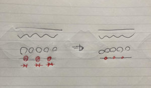 点状にちょっと間引くことで健常な部位を残しつつ収縮するようにしています。