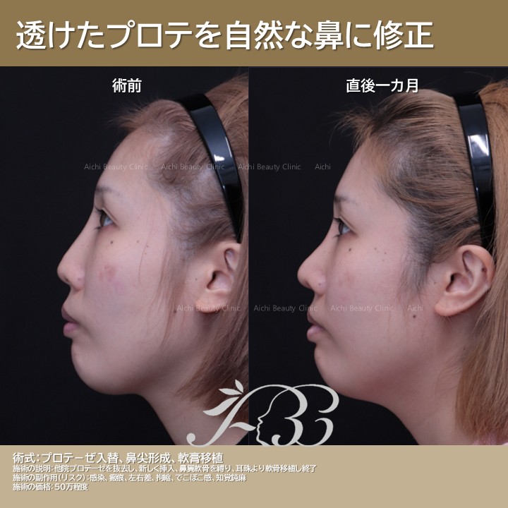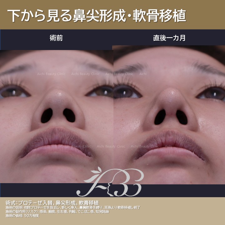 術直後は少しアップノーズになりますが、そのうち降りてきます。