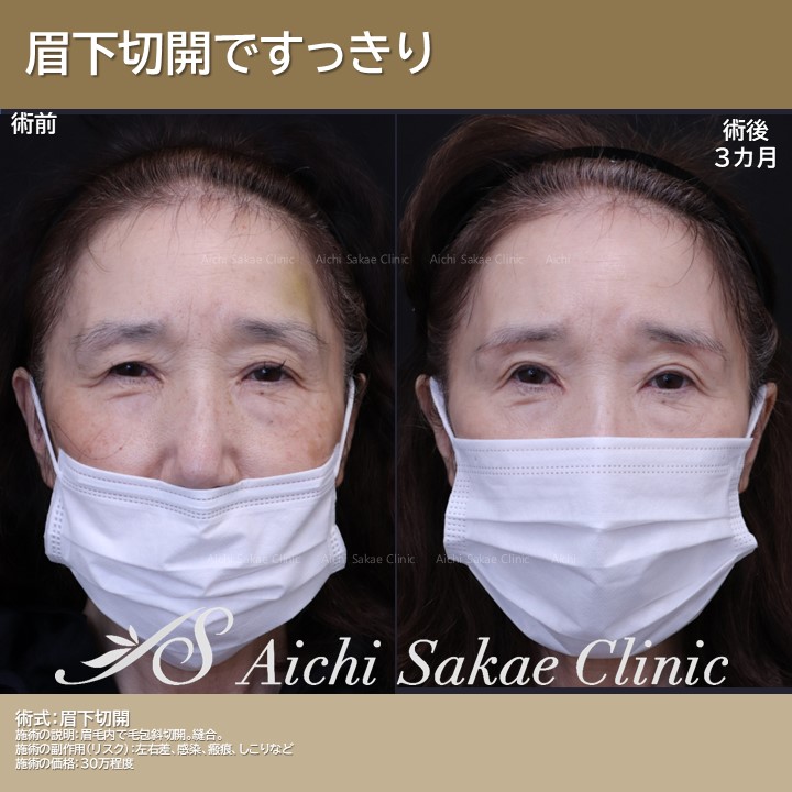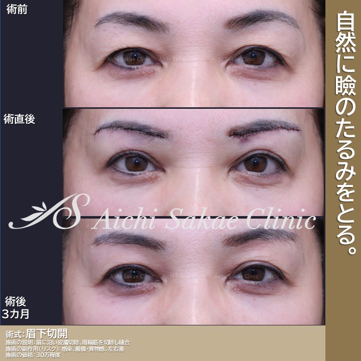 眉下切開は、余分な皮膚を取り除くことでたるみを改善します。