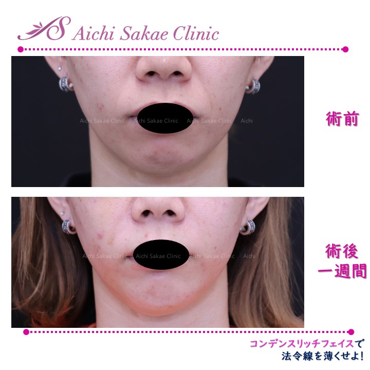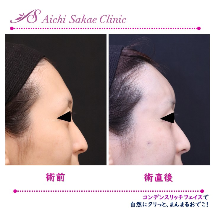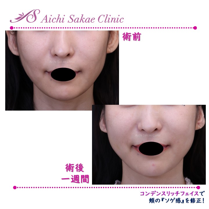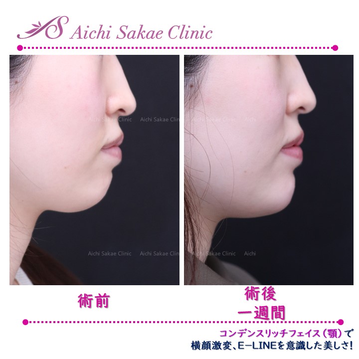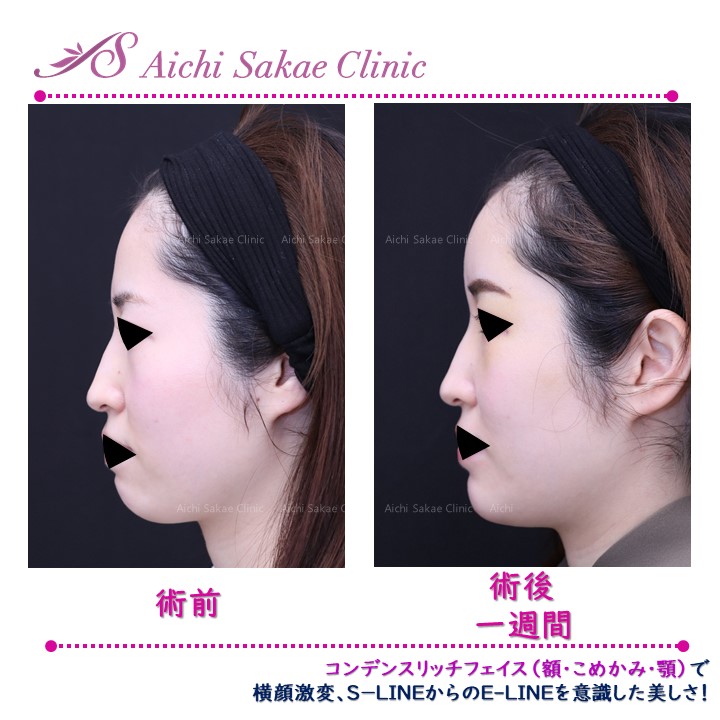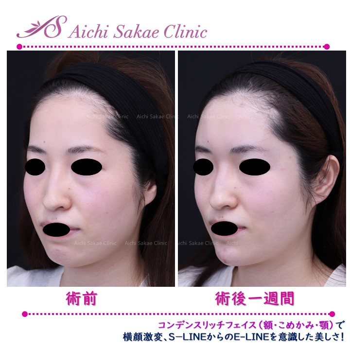 脂肪注入でゴツゴツした骨格を柔らかな丸みを帯びたシルエットに改善させました。術後一週間なので多少内出血が残りますが、かなりよい出来になってはいます。
