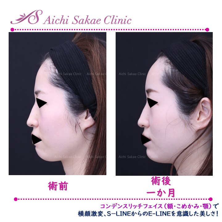 脂肪注入でゴツゴツした骨格を柔らかな丸みを帯びたシルエットに改善させました。かなりよい出来になってはいます。