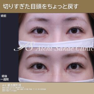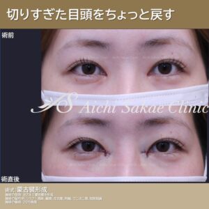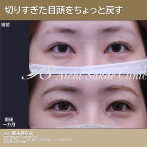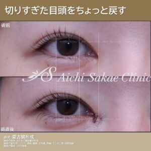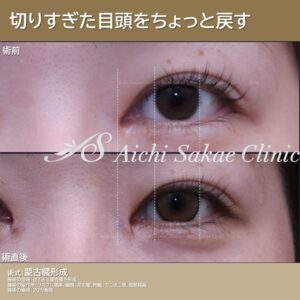 切りすぎた目頭切開を蒙古襞形成で改善しました。
