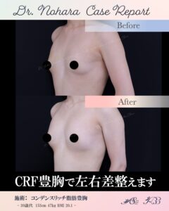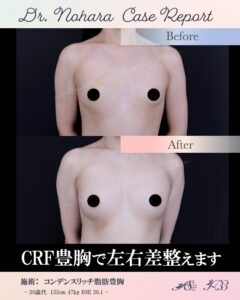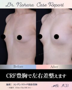 CRF注入の際に量を調整したり、注入部位をへんかさせることによって、バストアップを図りつつ左右差を調整することも可能です。