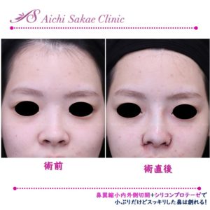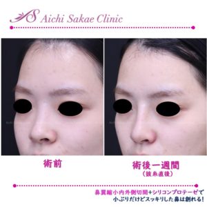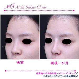 20代 シリコンプロテーゼ+鼻翼縮小内外側切開