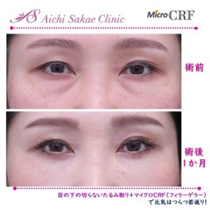 当院の名刺がわりのメニュー「目の下のたるみ取り+mCRF(目の下ゴルゴセット)」ですね。