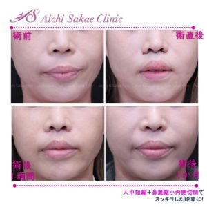 人中短縮は気を付けて行わないと、口唇が山形になったり、鼻翼が広がったりします。