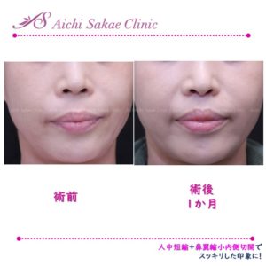 本症例は鼻の開きを抑制するために鼻翼縮小内側切開も同時に施術しております。