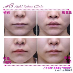 人中短縮は気を付けて行わないと、口唇が山形になったり、鼻翼が広がったりします。