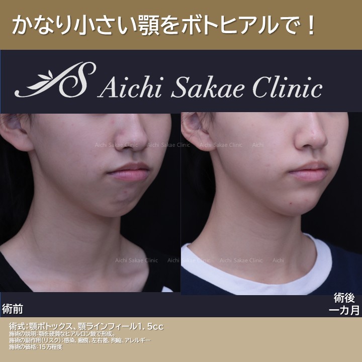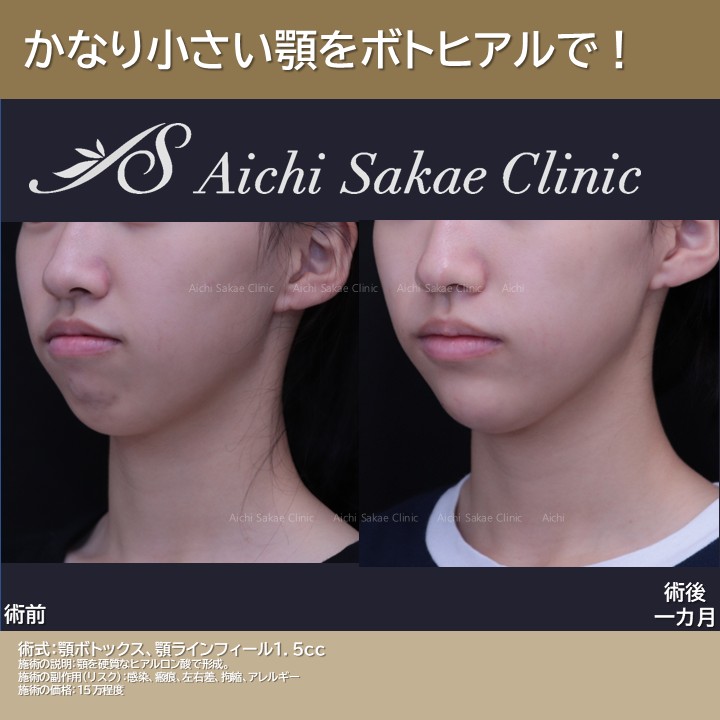 10代女性 顎ボトックス+顎ヒアルロン酸 10代女性 2025.10.25 フェイスライン 輪郭形成 ヒアルロン酸 この記事を書いた人 横山 侑祐 統括院長、皮膚科専門医 私は医学博士・日本皮膚科学会認定専門医として多岐にわたる皮膚疾患・皮膚トラブルを大学病院・総合病院にて診療したのち、業界最大手の美容外科である「湘南美容クリニック」の院長職を歴任してまいりました。 それらの経験を活かし「速く、美しく、適切な価格で」皆さまの皮膚の健康からさらなる美しさまで幅広く貢献できるクリニックを目指します。 条件に合った症例を検索する 診療科目を選択 鼻尖部軟骨移植 ワシ鼻修正 鷲鼻 垂れ目 目尻切開 目の下 目の下のたるみとり 脂肪とり 上まぶた あぐら鼻 顎 フェイスライン ゴルゴ こめかみ 女性 まぶたのたるみ 口唇ヒアルロン酸 男性 顎下 頬 額 目の下のたるみ取り ヒアルロン酸豊胸 鷲鼻削り 額形成 鼻翼縮小外側法 二重 バストアップ 全顔モニター リップリフト グラマラスライン タレ目 結膜切開垂れ目 鼻中隔延長 シリコンプロテーゼ 毛穴 ポテンツァ ニキビ跡 potenza コンデンスリッチフェイス 口角ボトックス スマイルリップ 鼻翼縮小内外側切開 人中短縮ボトックス mfl 中顔面 ダイエット ベイザー脂肪吸引 埋没法経過 フィラーゲラー マイクロcrf 脂肪注入 nose 鼻翼縮小 鼻翼縮小内側法 ミッドフェイスリフト 鼻整形 額のしわ バッグ豊胸 挙筋前転 グランドアイ コンデンスリッチ 眉下リフト 豊胸 埋没法二重術 自然癒着法 軟骨移植 鼻尖形成 crfフェイス 顎下脂肪吸引 crf豊胸 涙袋 涙袋ヒアル コンデンスリッチ豊胸 シリコンバッグ豊胸 ハイブリッド豊胸 脂肪吸引 眉下切開 眼瞼下垂 全切開 他院修正 頬顎下脂肪吸引 vaser脂肪吸引 アンカーリフト 糸リフト 輪郭形成 目の下の切らないたるみ取り くま 目頭切開 埋没法 裏ハムラ クマ治療 ヒアルロン酸治療 二重瞼・目元 しみ治療 VITA Cカール作成 アヒル口 にっこリップ ヒアルロン酸 人中短縮 口唇 口角挙上 クリニックを選択 栄本院 安城院 気になるキーワードを入力 症例を検索 絞り込み 絞り込み × 診療科目を選択 鼻尖部軟骨移植 ワシ鼻修正 鷲鼻 垂れ目 目尻切開 目の下 目の下のたるみとり 脂肪とり 上まぶた あぐら鼻 顎 フェイスライン ゴルゴ こめかみ 女性 まぶたのたるみ 口唇ヒアルロン酸 男性 顎下 頬 額 目の下のたるみ取り ヒアルロン酸豊胸 鷲鼻削り 額形成 鼻翼縮小外側法 二重 バストアップ 全顔モニター リップリフト グラマラスライン タレ目 結膜切開垂れ目 鼻中隔延長 シリコンプロテーゼ 毛穴 ポテンツァ ニキビ跡 potenza コンデンスリッチフェイス 口角ボトックス スマイルリップ 鼻翼縮小内外側切開 人中短縮ボトックス mfl 中顔面 ダイエット ベイザー脂肪吸引 埋没法経過 フィラーゲラー マイクロcrf 脂肪注入 nose 鼻翼縮小 鼻翼縮小内側法 ミッドフェイスリフト 鼻整形 額のしわ バッグ豊胸 挙筋前転 グランドアイ コンデンスリッチ 眉下リフト 豊胸 埋没法二重術 自然癒着法 軟骨移植 鼻尖形成 crfフェイス 顎下脂肪吸引 crf豊胸 涙袋 涙袋ヒアル コンデンスリッチ豊胸 シリコンバッグ豊胸 ハイブリッド豊胸 脂肪吸引 眉下切開 眼瞼下垂 全切開 他院修正 頬顎下脂肪吸引 vaser脂肪吸引 アンカーリフト 糸リフト 輪郭形成 目の下の切らないたるみ取り くま 目頭切開 埋没法 裏ハムラ クマ治療 ヒアルロン酸治療 二重瞼・目元 しみ治療 VITA Cカール作成 アヒル口 にっこリップ ヒアルロン酸 人中短縮 口唇 口角挙上 クリニックを選択 栄本院 安城院 人気ワード しみ治療 ルメッカ
