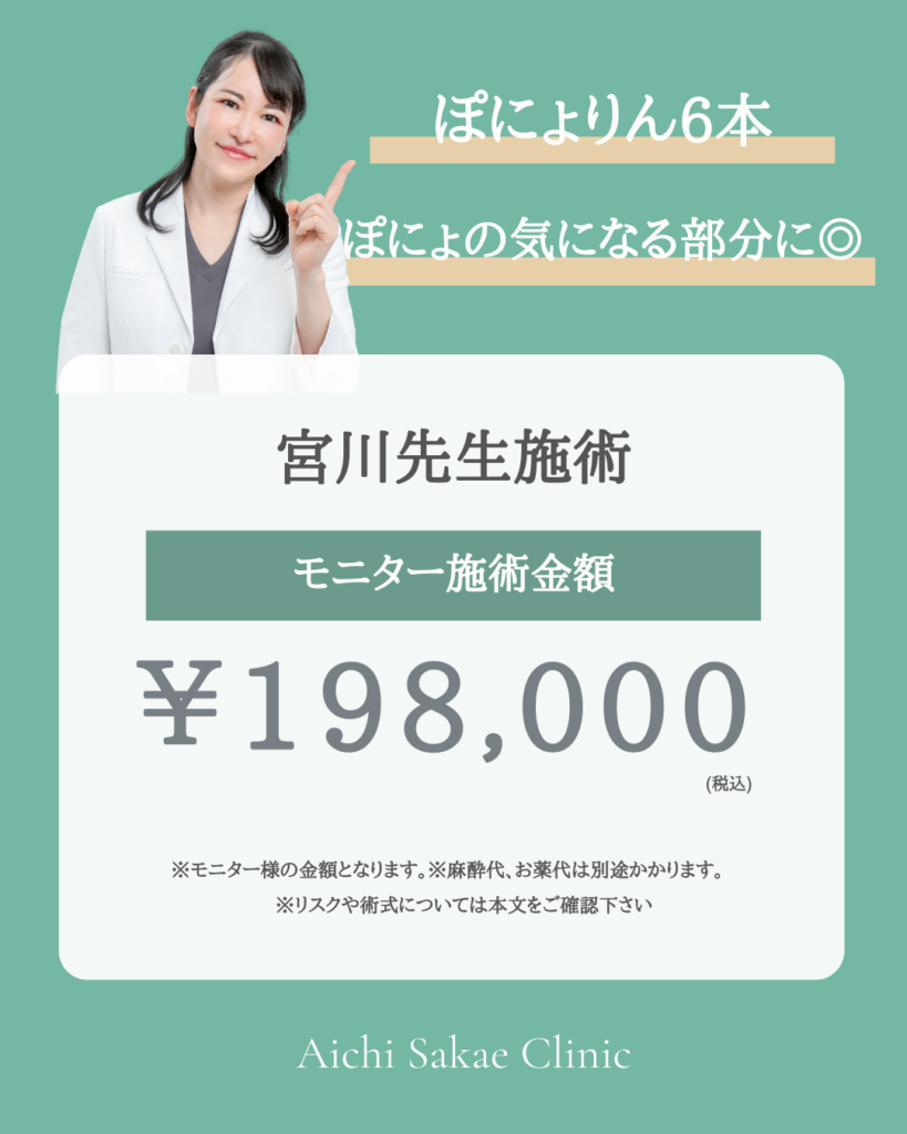 ぽにょりん6本 栄本院 50代女性 2025.12.22 あいちビューティークリニック栄本院です🏥 本日の症例紹介📸 大人気✨ぽにょりん✨施術後1週間目のお写真です! 糸が得意で当院のスタッフもよく受けている宮川紅先生の執刀です💕👏🏻 まだ1週間のため多少腫れはありますがこれからの経過も楽しみですね☺️ ⚠️リスク⚠️痛み、はれ、ひきつれ感、感染など 💰金額💰¥198,000(部分モニター様価格)※別途麻酔代、お薬代、デポジット金が発生いたします🙇🏻♀️ ぽにょにお悩みの方お気軽にご相談ください🌸 お待ちしています🌈 糸リフト この記事を書いた人 宮川 紅 日本専門医機構認定皮膚科専門医 大学病院や市中病院、クリニックで皮膚科専門医として勤務してまいりました。 その中で、病気じゃないんですが・・・と肌トラブルや、見た目の変化を気にしていらっしゃる方が多いことを実感しました。 他人からみたら小さく感じるような悩みでも、改善することで表情も明るく、自信も持てる様になれます。 皆様が、よりキレイに前向きになれるお手伝いが出来れば、と思っています。 保険診療から美容の内容まで、お気軽にご相談ください。 条件に合った症例を検索する 診療科目を選択 鼻尖部軟骨移植 ワシ鼻修正 鷲鼻 垂れ目 目尻切開 目の下 目の下のたるみとり 脂肪とり 上まぶた あぐら鼻 顎 フェイスライン ゴルゴ こめかみ 女性 まぶたのたるみ 口唇ヒアルロン酸 男性 顎下 頬 額 目の下のたるみ取り ヒアルロン酸豊胸 鷲鼻削り 額形成 鼻翼縮小外側法 二重 バストアップ 全顔モニター リップリフト グラマラスライン タレ目 結膜切開垂れ目 鼻中隔延長 シリコンプロテーゼ 毛穴 ポテンツァ ニキビ跡 potenza コンデンスリッチフェイス 口角ボツリヌストキシン注射 スマイルリップ 鼻翼縮小内外側切開 人中短縮ボツリヌストキシン注射 mfl 中顔面 ダイエット ベイザー脂肪吸引 埋没法経過 フィラーゲラー マイクロcrf 脂肪注入 nose 鼻翼縮小 鼻翼縮小内側法 ミッドフェイスリフト 鼻整形 額のしわ バッグ豊胸 挙筋前転 グランドアイ コンデンスリッチ 眉下リフト 豊胸 埋没法二重術 自然癒着法 軟骨移植 鼻尖形成 crfフェイス 顎下脂肪吸引 crf豊胸 涙袋 涙袋ヒアル コンデンスリッチ豊胸 シリコンバッグ豊胸 ハイブリッド豊胸 脂肪吸引 眉下切開 眼瞼下垂 全切開 他院修正 頬顎下脂肪吸引 vaser脂肪吸引 アンカーリフト 糸リフト 輪郭形成 目の下の切らないたるみ取り くま 目頭切開 埋没法 裏ハムラ クマ治療 ヒアルロン酸治療 二重瞼・目元 しみ治療 VITA Cカール作成 アヒル口 にっこリップ ヒアルロン酸 人中短縮 口唇 口角挙上 クリニックを選択 栄本院 安城院 気になるキーワードを入力 症例を検索 絞り込み 絞り込み × 診療科目を選択 鼻尖部軟骨移植 ワシ鼻修正 鷲鼻 垂れ目 目尻切開 目の下 目の下のたるみとり 脂肪とり 上まぶた あぐら鼻 顎 フェイスライン ゴルゴ こめかみ 女性 まぶたのたるみ 口唇ヒアルロン酸 男性 顎下 頬 額 目の下のたるみ取り ヒアルロン酸豊胸 鷲鼻削り 額形成 鼻翼縮小外側法 二重 バストアップ 全顔モニター リップリフト グラマラスライン タレ目 結膜切開垂れ目 鼻中隔延長 シリコンプロテーゼ 毛穴 ポテンツァ ニキビ跡 potenza コンデンスリッチフェイス 口角ボツリヌストキシン注射 スマイルリップ 鼻翼縮小内外側切開 人中短縮ボツリヌストキシン注射 mfl 中顔面 ダイエット ベイザー脂肪吸引 埋没法経過 フィラーゲラー マイクロcrf 脂肪注入 nose 鼻翼縮小 鼻翼縮小内側法 ミッドフェイスリフト 鼻整形 額のしわ バッグ豊胸 挙筋前転 グランドアイ コンデンスリッチ 眉下リフト 豊胸 埋没法二重術 自然癒着法 軟骨移植 鼻尖形成 crfフェイス 顎下脂肪吸引 crf豊胸 涙袋 涙袋ヒアル コンデンスリッチ豊胸 シリコンバッグ豊胸 ハイブリッド豊胸 脂肪吸引 眉下切開 眼瞼下垂 全切開 他院修正 頬顎下脂肪吸引 vaser脂肪吸引 アンカーリフト 糸リフト 輪郭形成 目の下の切らないたるみ取り くま 目頭切開 埋没法 裏ハムラ クマ治療 ヒアルロン酸治療 二重瞼・目元 しみ治療 VITA Cカール作成 アヒル口 にっこリップ ヒアルロン酸 人中短縮 口唇 口角挙上 クリニックを選択 栄本院 安城院 人気ワード クマ治療 裏ハムラ 糸リフト
