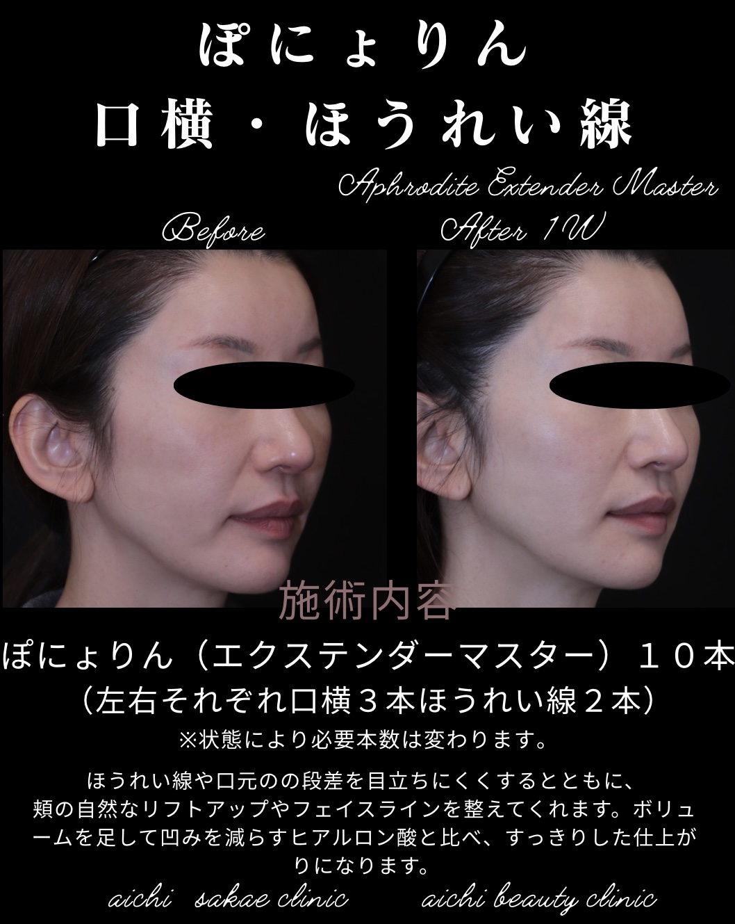 ぽにょりん(エクステンダーマスター)は、口周りやフェイスラインの“もたつき”・“段差”を自然に整えるための糸リフト治療です。
