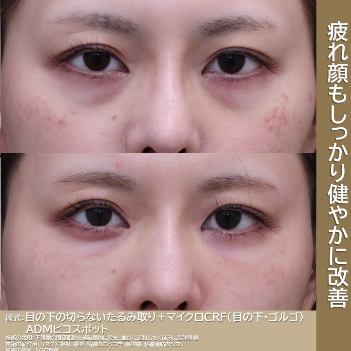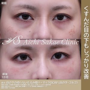 当院の名刺がわりのメニュー「目の下のたるみ取り+mCRF(目の下ゴルゴセット)」ですね。