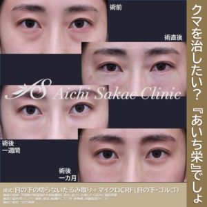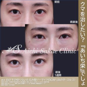 当院の名刺がわりのメニュー「目の下のたるみ取り+mCRF(目の下ゴルゴセット)」ですね。