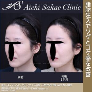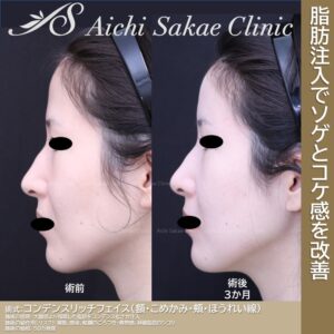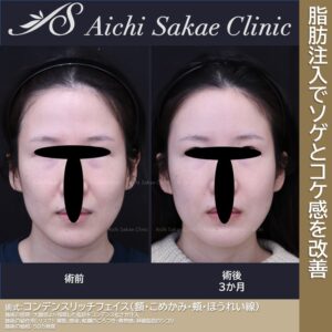 移植脂肪のしこり、凸凹感。感染。