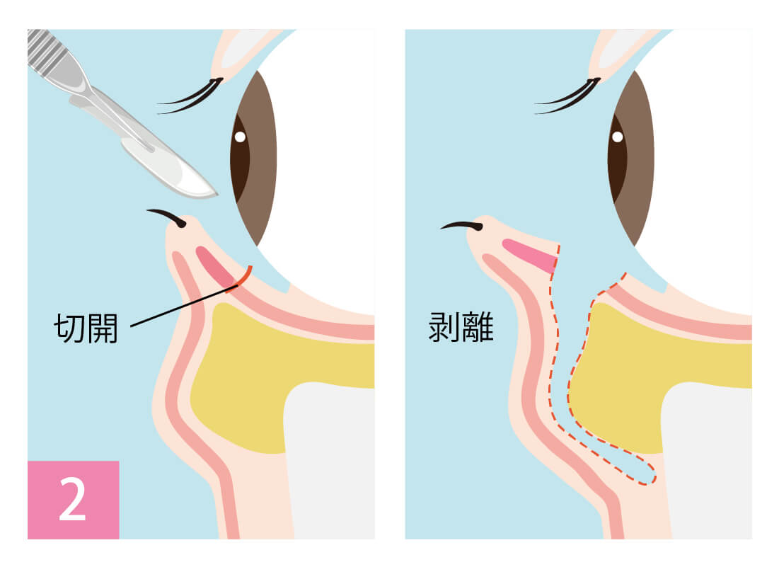 裏ハムラ法は、脂肪を取るのではなく、